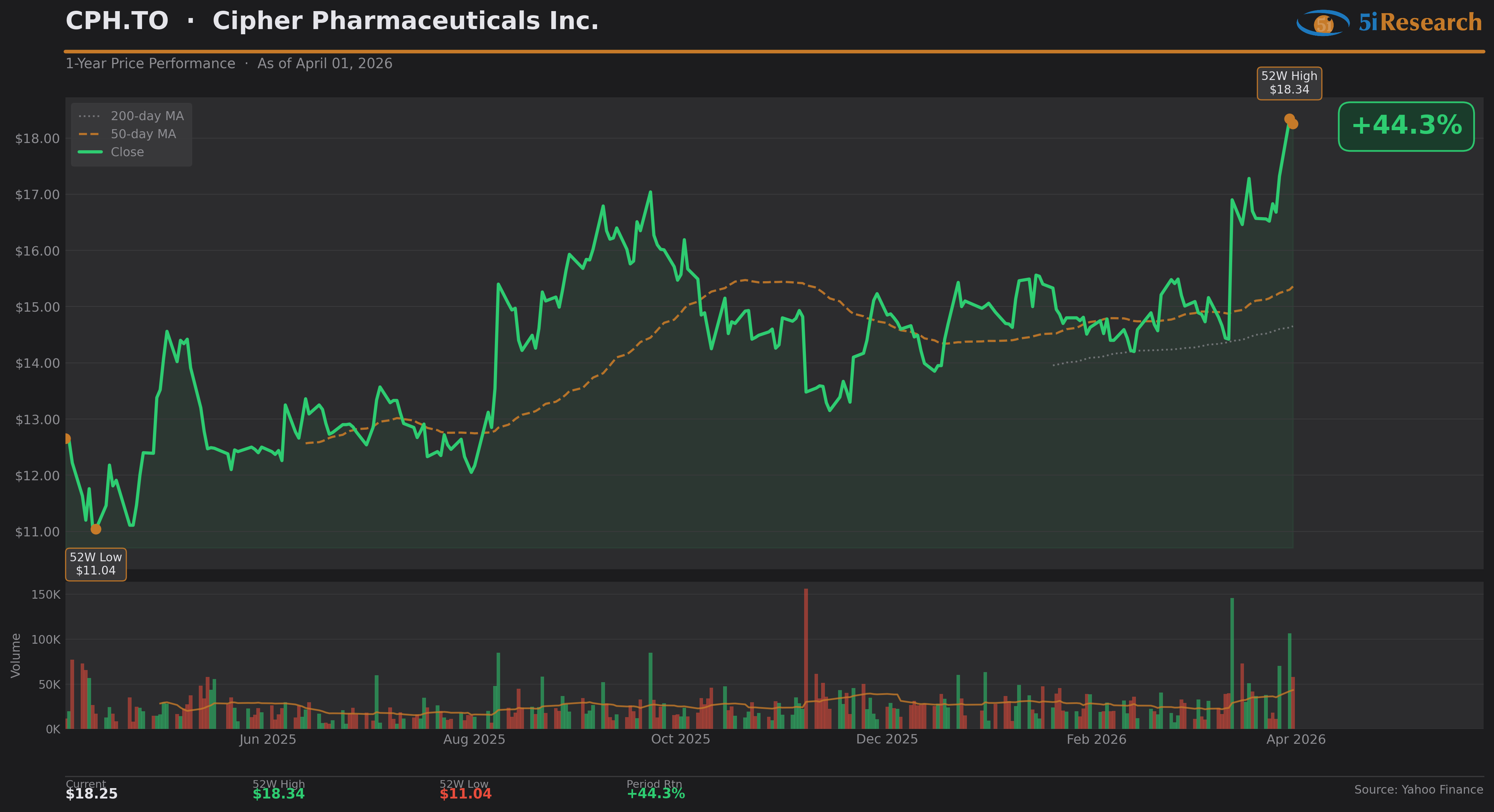 Cipher is a Canadian specialty pharmaceutical company focused on acquiring, in-licensing, and commercializing prescription drugs in Canada and Latin America — a model built on execution rather than drug discovery risk. The company posted a Q4 2025 earnings beat and has a live Health Canada review underway for Natroba, a single-treatment option for head lice and scabies that management believes addresses a genuine unmet need in the Canadian market. Investors are rewarding improving earnings visibility alongside a near-term pipeline catalyst, with the stock hitting a fresh 52-week high this week.