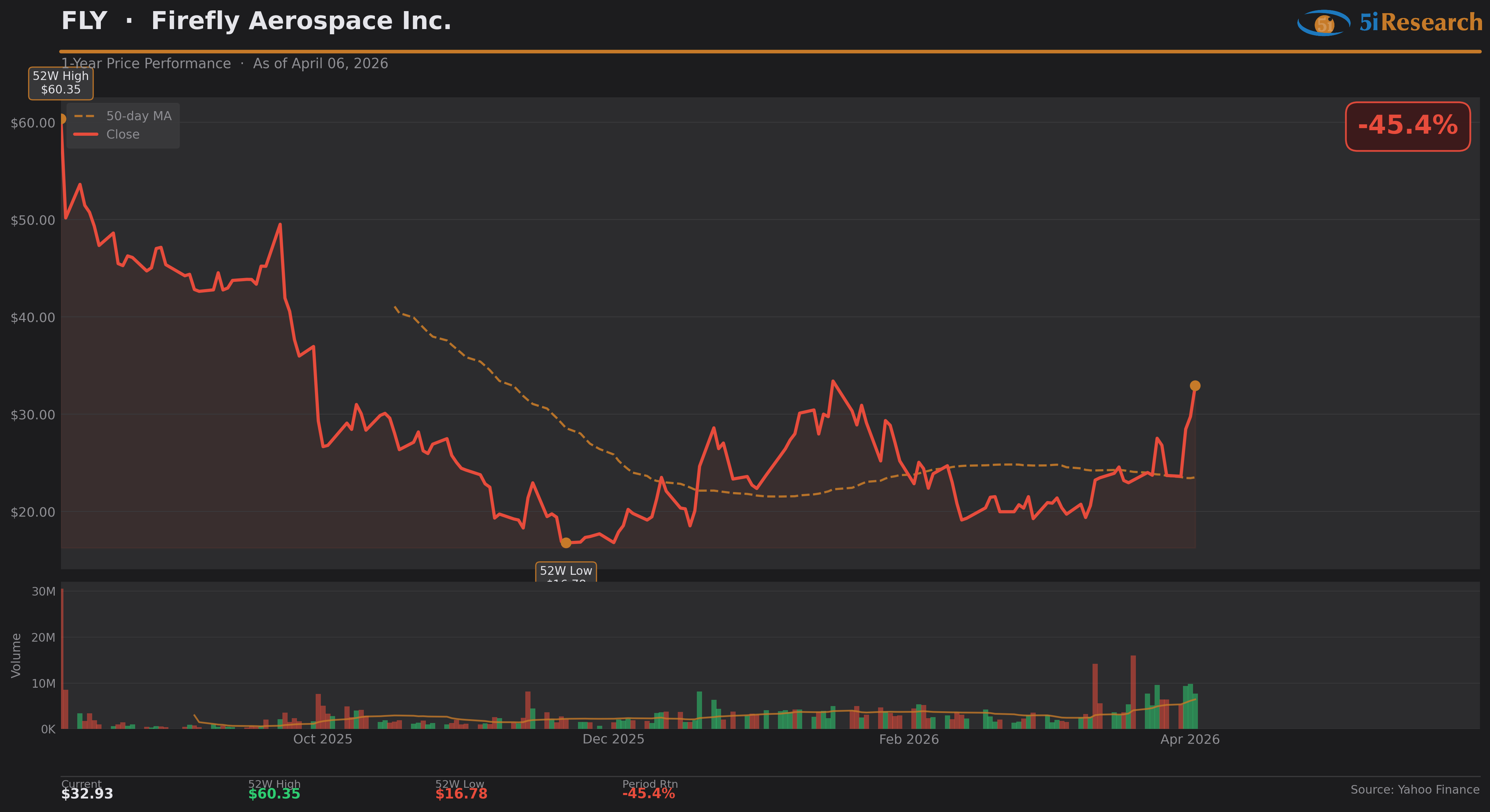 Firefly Aerospace had a week that was, appropriately enough, out of this world. Shares of the Cedar Park, Texas rocket-maker surged roughly 39% in the past week, riding the coattails of SpaceX's reported IPO filing - because nothing lights a fire under space stocks like the prospect of Elon Musk ringing the bell on Wall Street. The company had already given investors something to feel good about, completing a successful return-to-flight in mid-March after a nearly year-long stand-down, carrying a Lockheed Martin demonstrator to orbit in the process. The stock is now up more than 70% over the past month and sitting just around its key $34 resistance level - which is either a breakout moment or a very expensive place to wait. FLY's revival is running hot. You could say it's on fire. We won't apologize for that.