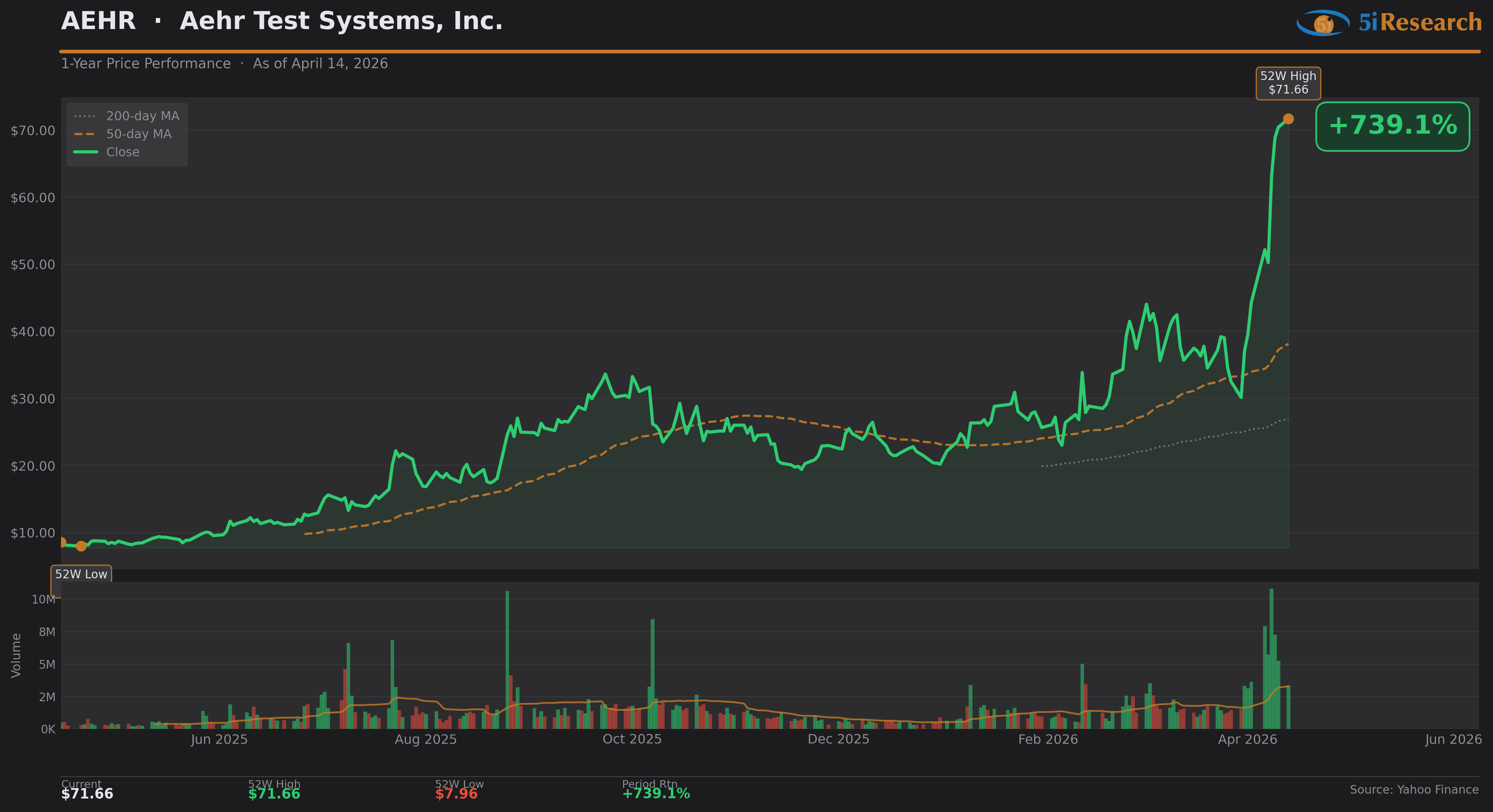 The AI party train continues, and investors keep searching for the next big mover. AEHR certainly has captured investors' hearts, with a 723% one-year gain and a 59% gain last week alone. AEHR sells systems that reduce the cost of DRAM, a key component in the AI trade. AEHR reported third-quarter results and also announced a financing.