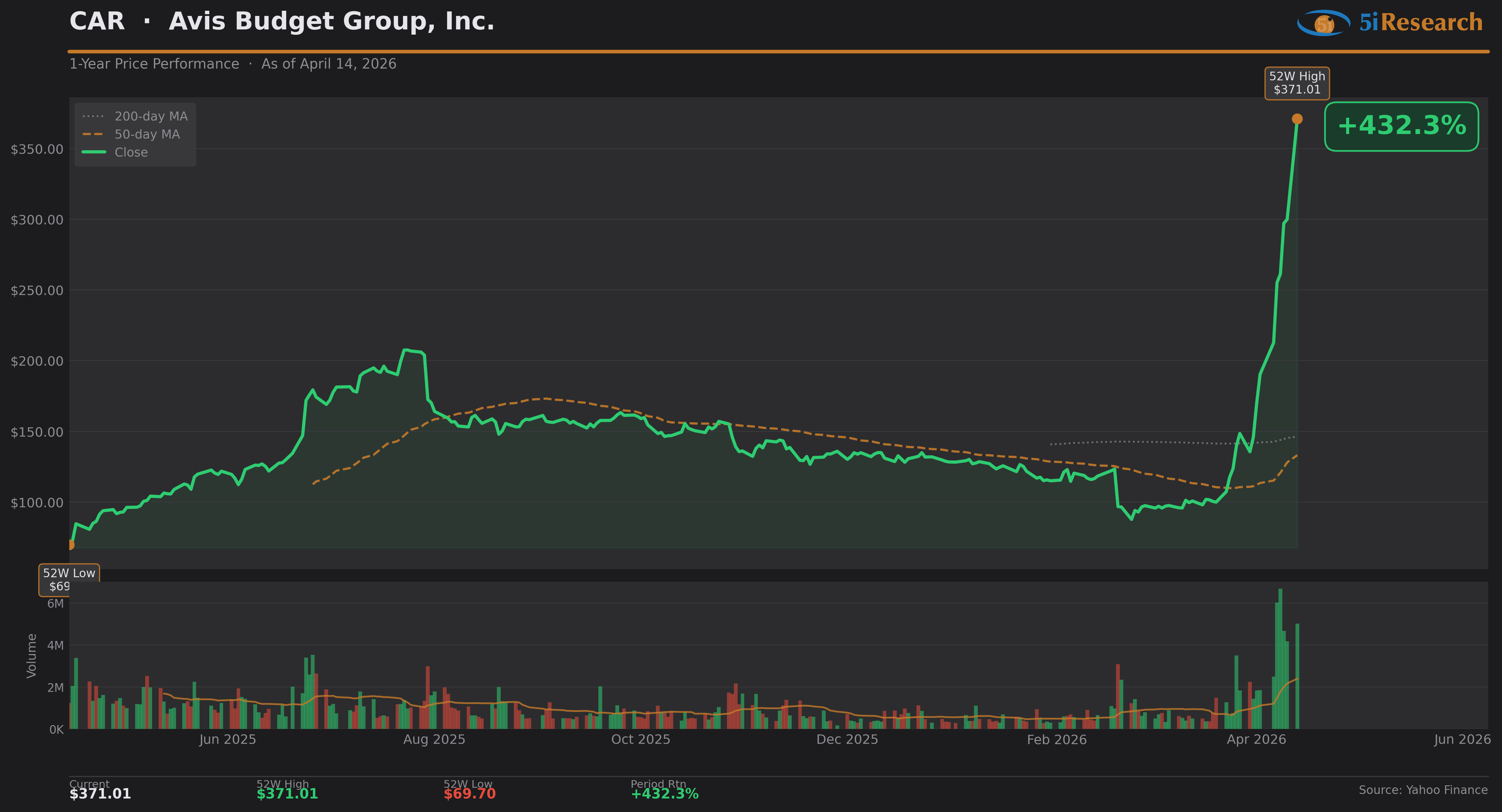 Don't get your shorts in a knot. Short sellers have been absolutely killed on CAR stock, up 58% last week and now up 330% in a year. The short interest in the stock is nearly 50%, and with news that Pentwater Capital acquired a large stake the cost to borrow shares skyrocketed, forcing short sellers to cover. The car rental business is somewhat boring but this situation has made CAR one of the hottest stocks of the year so far.
