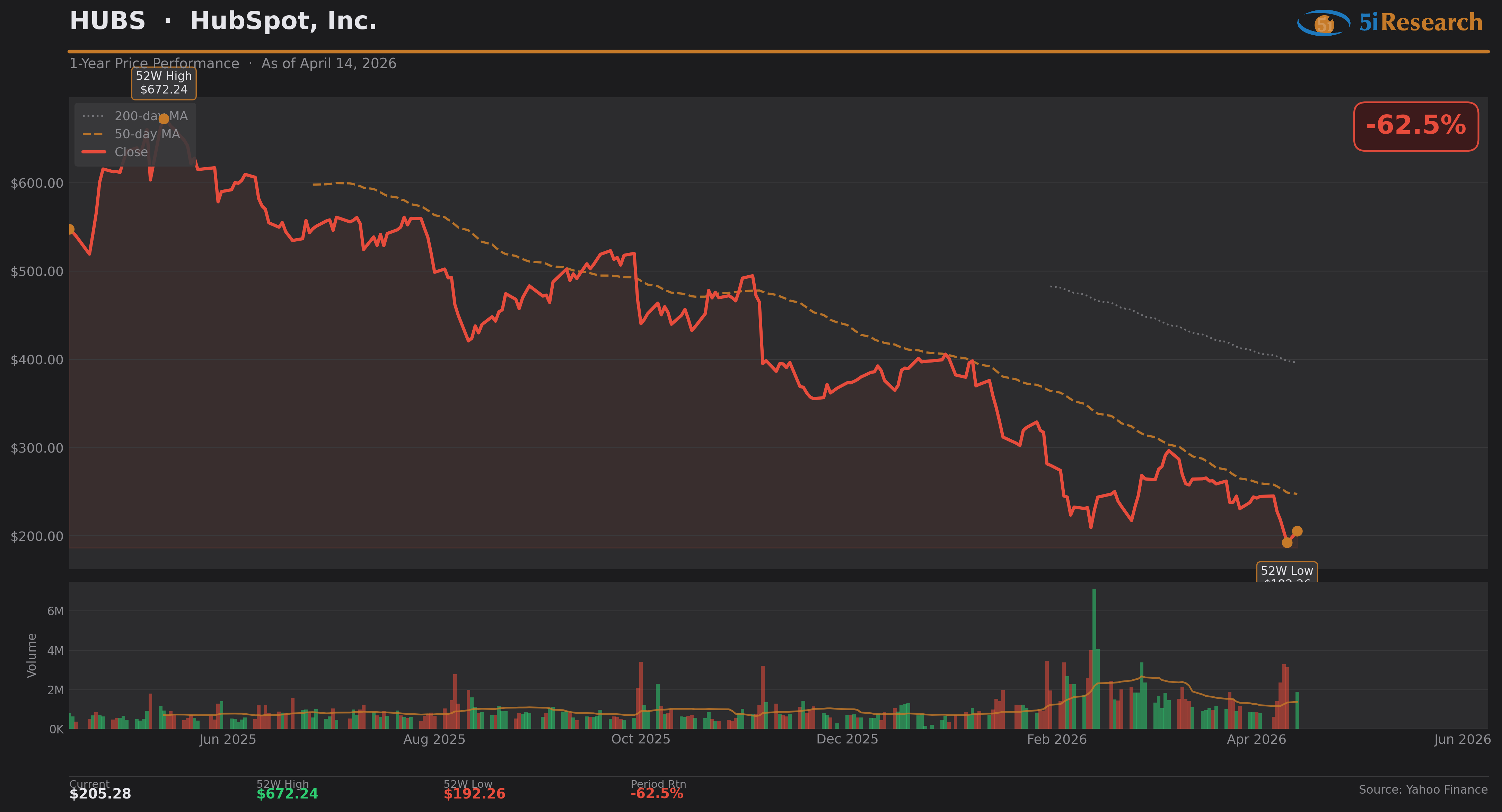 We could basically say for HUBS exactly what we said for SNOW above. Another week, another 21% decline for HUBS stock, bringing its year-to-date loss to 53%. The customer relationship management company is now down 77% since February of last year. Agentic AI is taking down everything. HUBS stock is now just 15x earnings, but is quickly becoming a value trap.